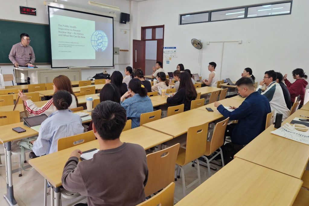 IPPNW-GLO Director, Chuck Johnson, visited Beijing last September, where he had the opportunity to provide a lecture on IPPNW’s work at a graduate class for future diplomats at the Chinese National University. Additionally, he met with leaders of the Chinese Medical Association, where they discussed the value of teaching medical students and other health professionals about the health effects of nuclear war, opening the doors to conducting a seminar on that topic at Peking Medical School in the future.